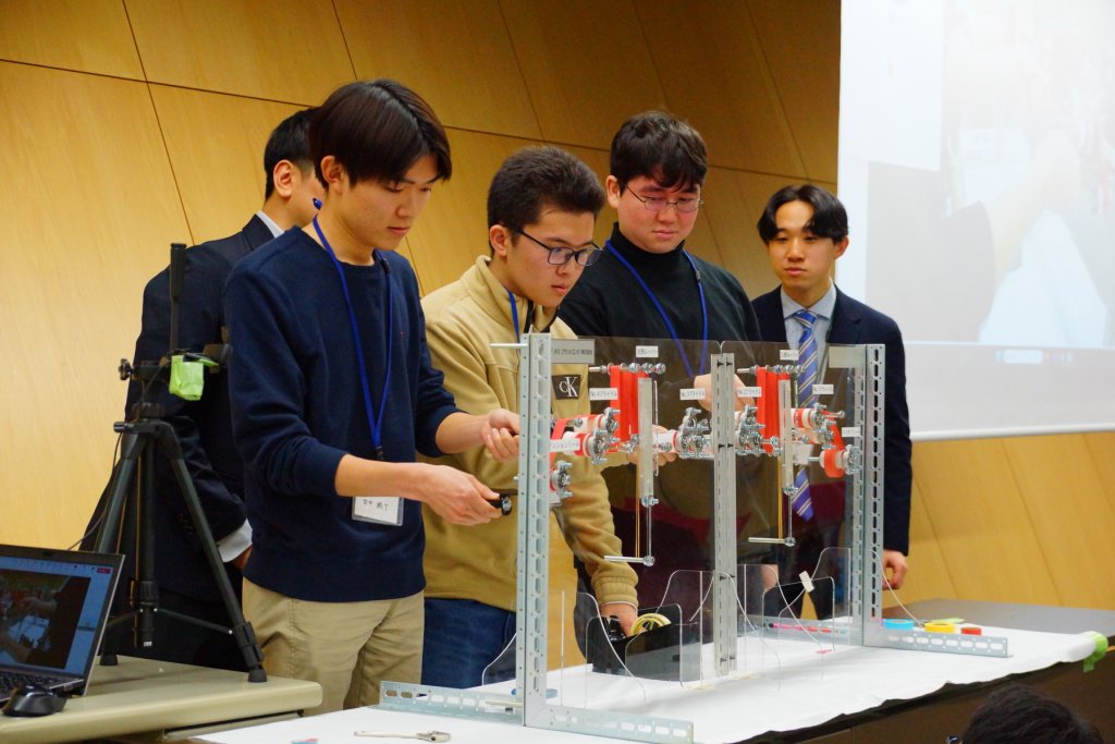 学生たちの所属はさまざまでしたが、グループワークを通じて積極的に意見を交換し、「いかに巻き取りの精度と速度を両立させるか」といった技術的な課題について真剣にディスカッションを行いました。各チームは試行錯誤の末、最後には成果を発表し合いました。