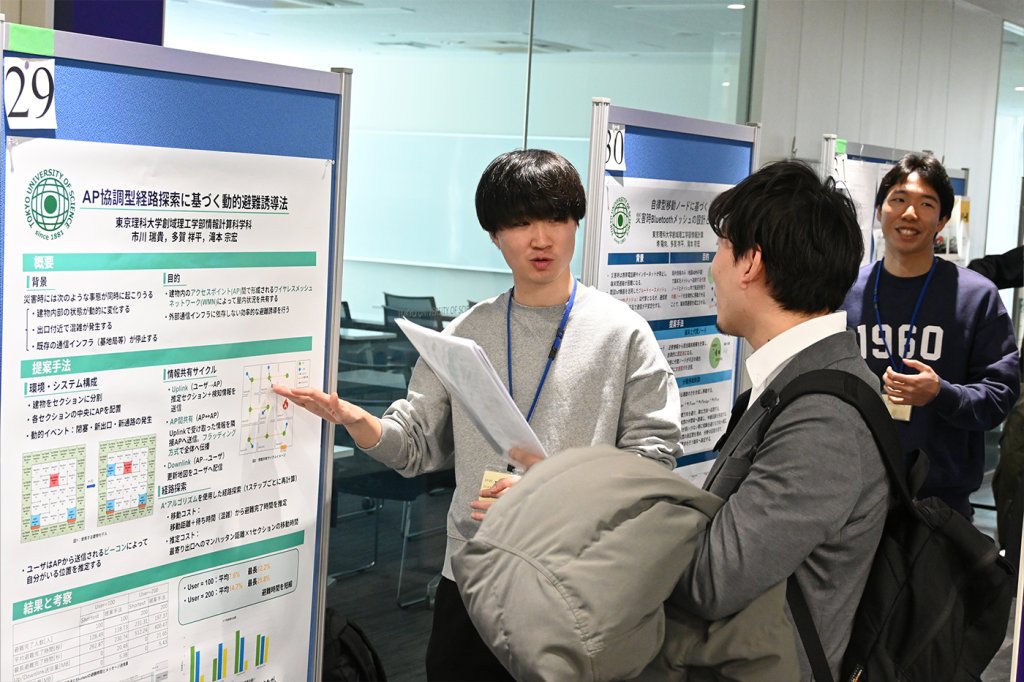 午前中は、野田キャンパス7号館2階共創エリアにおいて、拠点に参画する各研究室および企業・行政機関によるポスター発表が行われました。