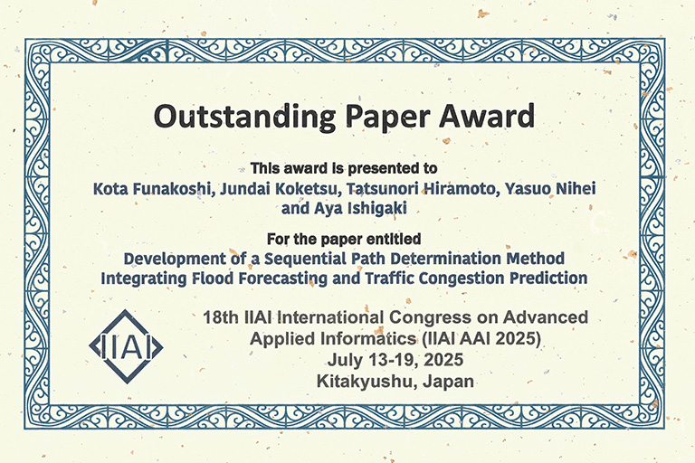 2025年7月13日~19日の7日間、国際会議 18th IIAI International Congress on Advanced Applied Informatics (IIAI AAI 2025) が福岡県北九州市で開催され、創域理工学研究科経営システム工学専攻 修士1年の船越皓太さんがOutstanding Paper Awardを受賞しました。