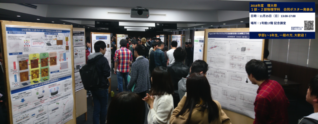 毎年恒例となっている、理学部1部&2部物理学科の合同ポスター発表会の記録です。 2019年度はこちら 2018年度はこちら -