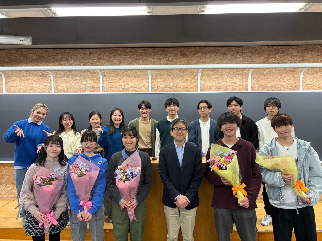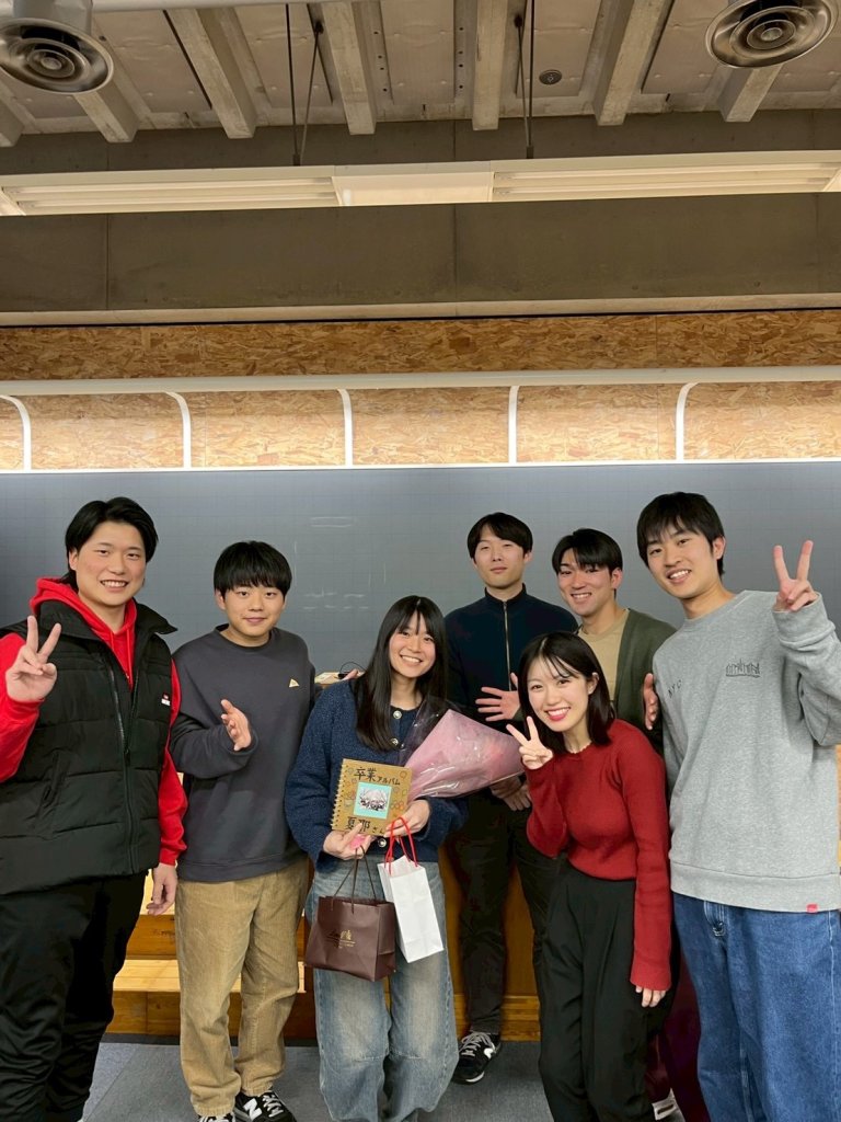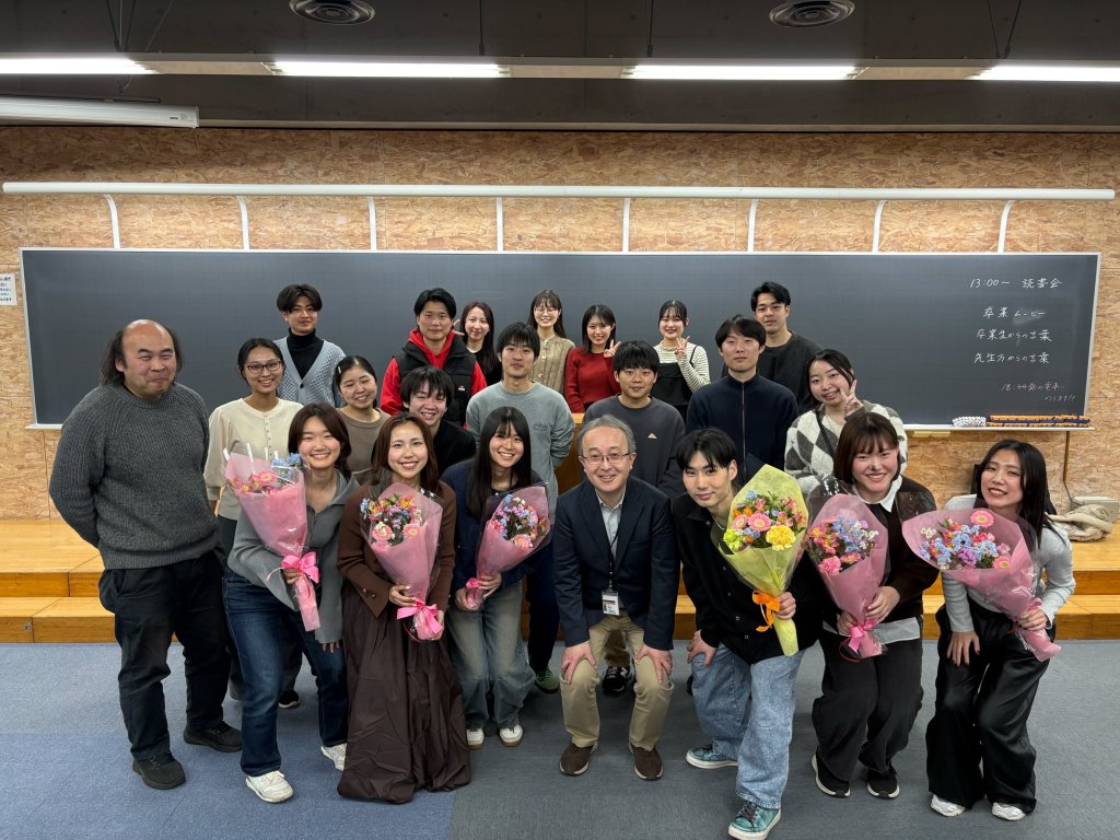 2025年度送別会を開催しました 2026 3/13 イベント 2025年度 送別会 2026年3月13日2026年4月16日 2026年3月13日に、卒業生の送別会を実施しました。 ご卒業・修了、おめでとうございます! これからのご活躍を心からお祈りしております! ▲Top Pageへ戻る イベント 2025年度 送別会 The International Chemical Congress of Pacific Basin Societies 2025に参加しました お花見を実施いたしました 関連記事 お花見を実施いたしました 2026年4月6日 縦割りコンパを実施いたしました 2025年11月13日 研究室全体BBQを開催しました 2025年11月6日 野田市立みずき小学校でシャボン玉に関する出張講義・実験を行いました。 2025年11月5日 ゼミ旅行 in 千葉に行ってきました 2025年7月24日 第23回研究室対抗スポーツフェスティバル(バレーボール大会)に出場しました 2025年6月7日 お花見を実施いたしました 2025年4月10日 2024年度送別会を開催しました 2025年3月12日