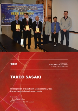 化学科の佐々木健夫先生が2016 SPIE Senior Memberに選ばれました