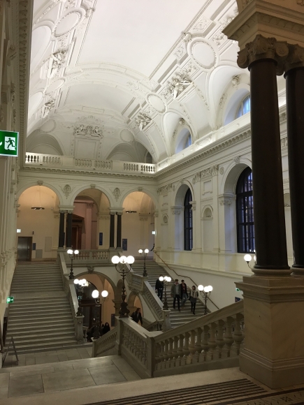オーストリアの首都,ウィーンはヨーロッパの大部分を支配してきたハプスブルグ家の本拠地で,街中には巨大な宮殿があちこちに残っています.現在はハプスブルグ家の財宝を展示する沢山の博物館として多くの観光客で賑わいを見せています.ウィーン大学は1365年,日本で言うと室町時代,細かく言えば南北朝時代のころ,やはりハプスブルグ家のルドルフ4世という大公によって作られた大学だそうで,写真にあるように内部は宮殿のようになっています.(ヨーロッパの建築物は石で造るので半永久的に使えます.)なので,大学に通い始めてしばらくは,美しい建物を見て歩くだけで楽しく,写真を沢山とってSNSにアップしたりしました.さらに歴史が古いので,沢山の学問のスーパースターの痕跡があります.みなさんも名前を聞いたことがあるであろう,ドップラー効果のドップラーや量子力学のシュレーディンガー,統計力学のボルツマンといった物理学者はもちろん,不完全性定理のゲーデル,精神分析学のフロイトなど人類史に燦然と輝く知の巨人が学び教えた場所で自分も研究できるというのは,幸せな限りでした.彼らの名を冠した研究所,ホールや銅像や住んでいたアパートなどがそこかしこにあり,彼らへ思いをはせると自然とやる気もみなぎってきます.東京の満員電車でストレスを抱えながら通勤するより,美しい町並みやキャンパスを歩いたりトラム(路面電車)で移動しながらアイディアを練る方がずっといいに決まっています.雑事に腐心することもなく,集中して共同研究ができ,充実した時間を持つことができました.