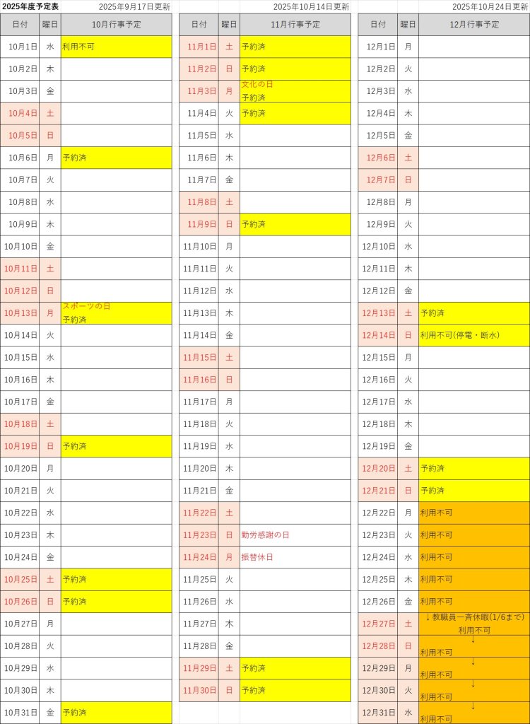 - 行事予定・予約状況