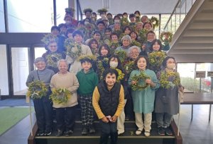 秋山先生は、数人ずつに分かれた各グループを回り、分かりやすく丁寧に説明をしてくださり、参加者もわからないことや困ったことについて、気軽に先生にお尋ねし、アットホーム的な雰囲気の中で、リース作りが進められました。