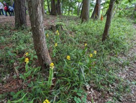 ミニ講義終了後は、理窓公園に移動し、柳沢氏の説明を受けながら、きんらん、ぎんらんの花鑑賞を1時間ほど行い、理窓公園のおよそ南半分の区で、きんらん1576株、ぎんらん130株 開花したことを確認しました。(参加した本学学生がカウント)