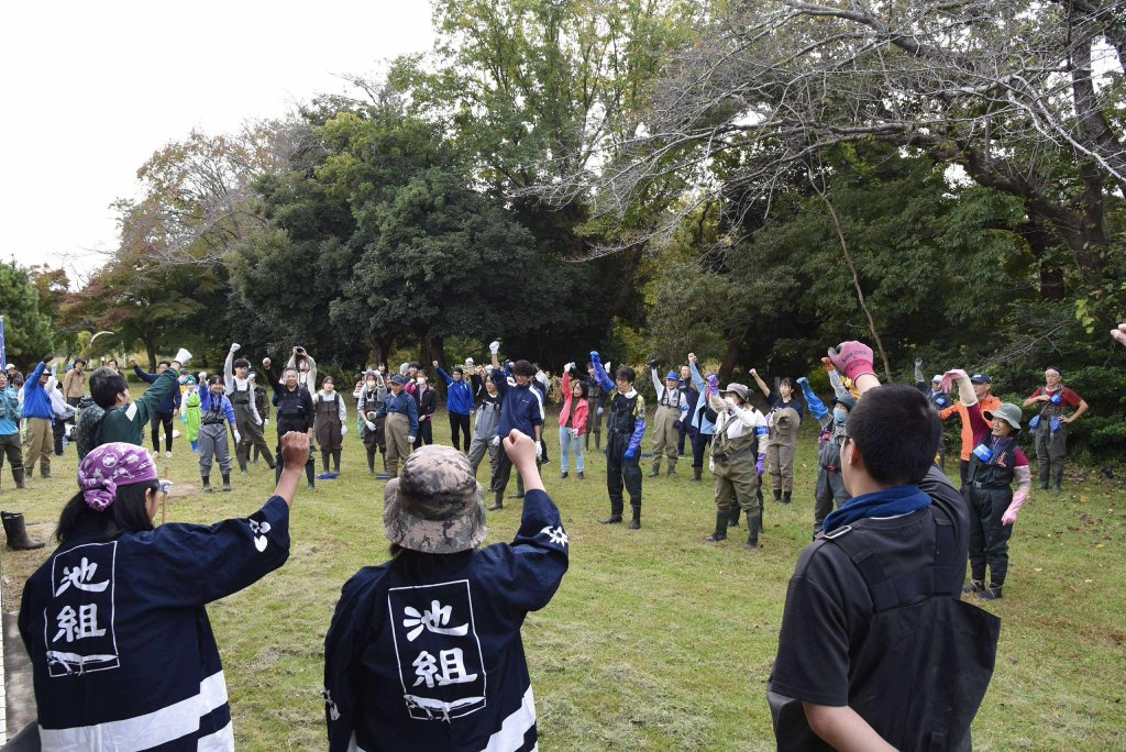 水質改善及び生物多様性を向上させるため、11月1日(土)に「水抜き」、翌2日(日)に「生態確認(外来種駆除等)」と、2日間にわたり、白鳥の池の「かいぼり※」を行いました。