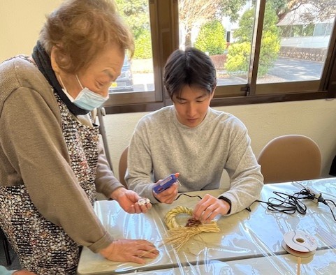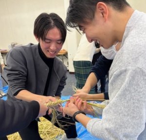 2025年12月13日(土)、本学野田キャンパス内のセミナーハウスにおいて、2025年 第6回 野田きゃんカフェ 「“稲わらで手作り” ~新年を彩る正月飾り体験~」を開催しました。