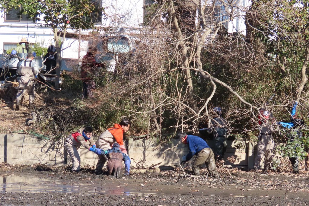 2026年1月25日(日)に、NPO法人 生態工房および、その関係ボランティア団体協力のもと、昨年11月に実施した「かいぼり」に引き続き、白鳥の池の環境改善を目的とした作業を行いました。