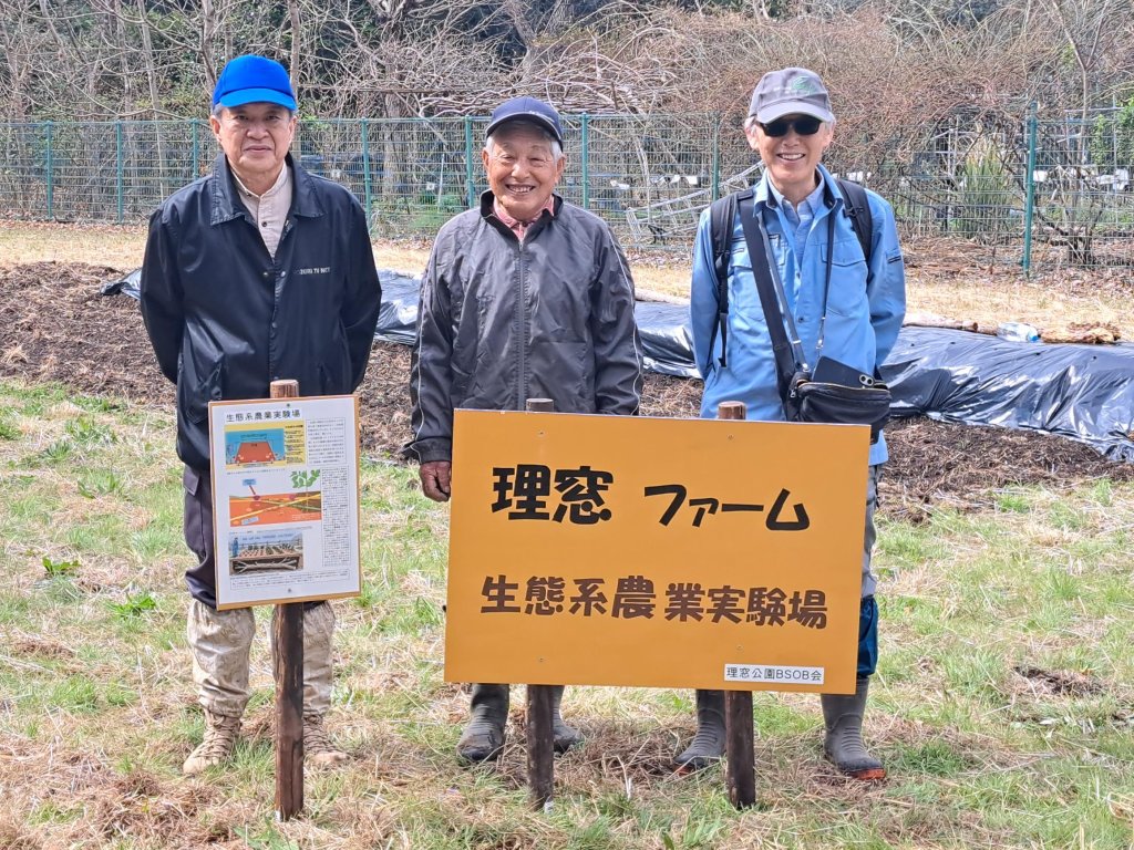 3月28日(土)、理窓ファーム(理窓公園)に、支援隊agiriに続く、新たな生態系実験農場が誕生しました。これは本学理工学部 応用生物科学科(現・創域理工学部 生命生物科学科)の卒業生有志で組織する理窓公園BSOB会による、自然の力のみで農業をする実験的農法です。
