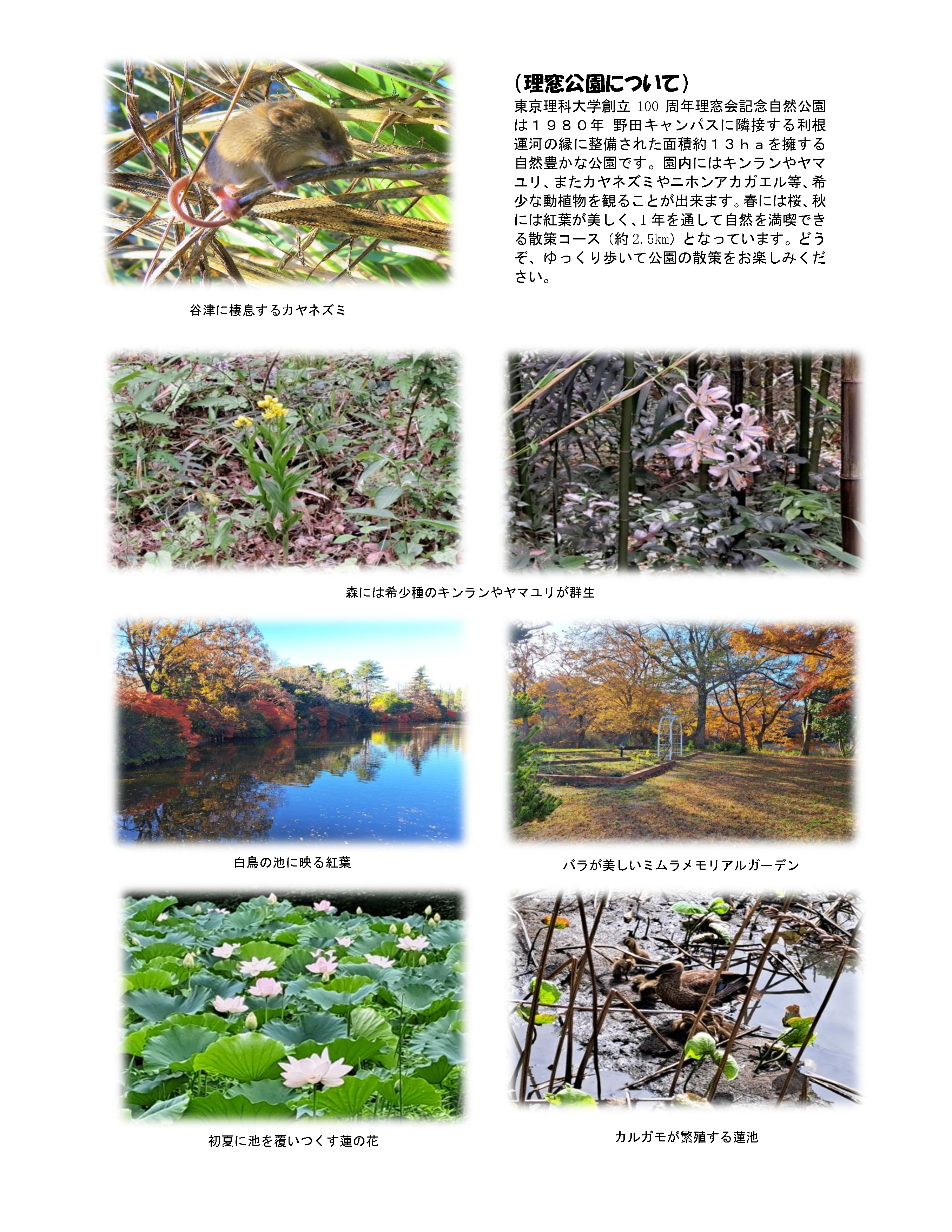 創立100周年理窓会記念自然公園(以下、理窓公園)は、本学創立100周年記念事業の一環で整備されました。