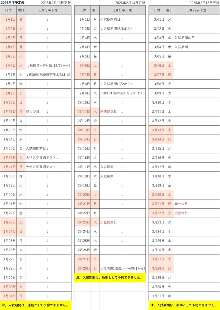 - 行事予定・予約状況