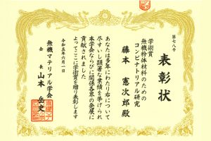 藤本 憲次郎教授が無機マテリアル学会において学術賞を受賞しました。