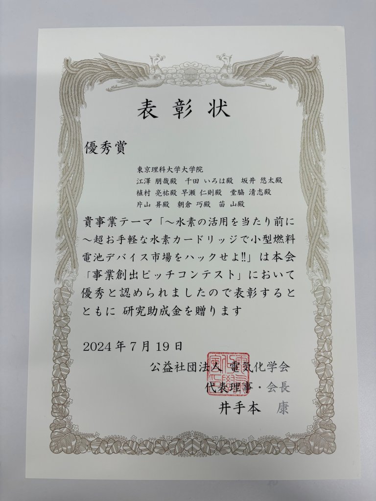 電気化学会 事業創出ピッチコンテストにおいて本学教員ら及び大学院生らが事業化ピッチコンテスト優秀賞を受賞