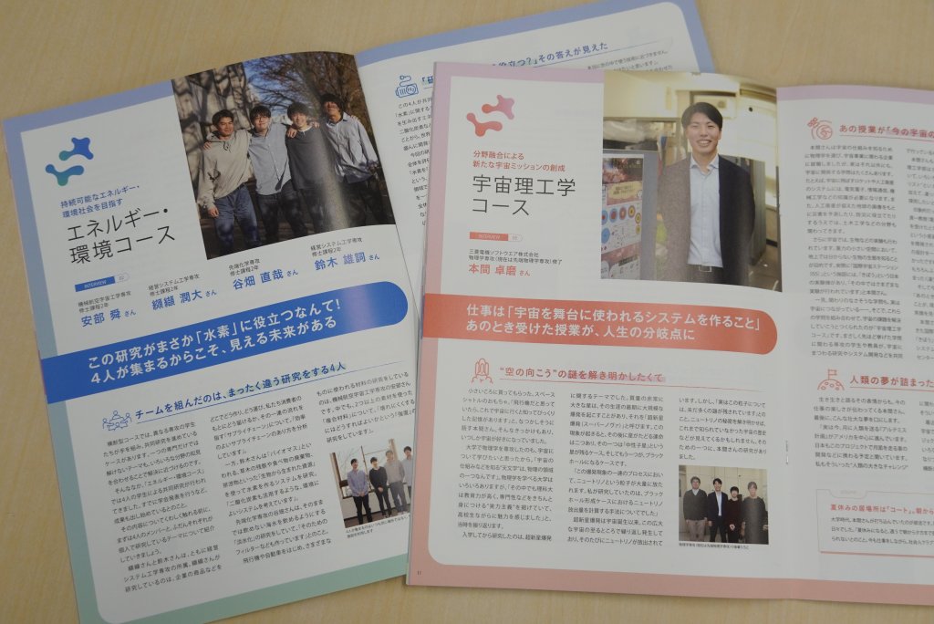 今回の冊子では、主に、創域理工学部・研究科の特長的な学びのシステム「横断型コース」の学生・卒業生12名を紹介しています。創域理工学部が掲げる理念「創域」の最先端を目指す学生・卒業生たちの研究活動の様子から、受験生、企業や地域の皆様に、創域理工学部・研究科についてより理解を深めていただける内容となっています。