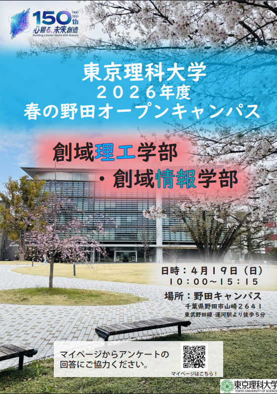 2026年度 春の野田オープンキャンパス開催のお知らせ 4/19(日)