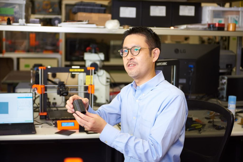 近年、様々な分野で必要性が高まっている「複合材料」を研究している松崎亮介教授は、複合材料を3Dプリンティングによって成形する方法の開発に注力し、その実現を目指しています。