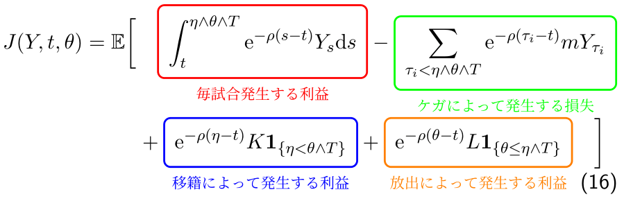 クラブは、選手のパフォーマンスがよければクラブに残ってもらいたいし、パフォーマンスが下がっていれば放出したい。または、高い移籍金が得られるうちに放出して利益を得たい、などと考えます。その場合、有力な選手ほど選択肢は多い、つまりリアルオプションが多く、価値が高い。その価値を計算する式をリアルオプションの理論から作り、そこに選手のデータを入れることで、選手の価値が数値化できるという流れです。