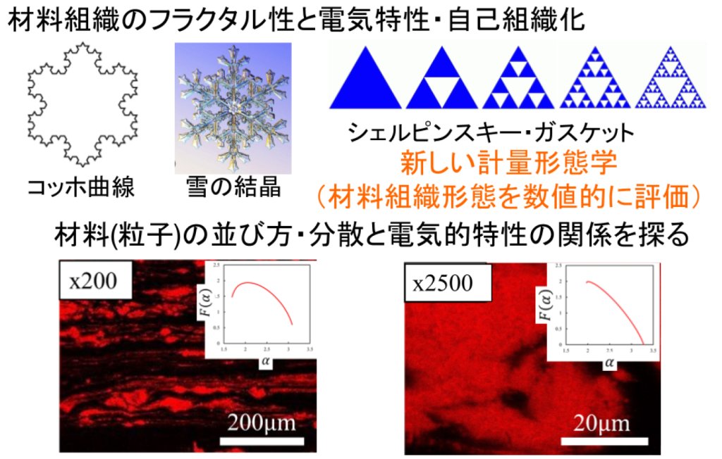 マルチフラクタル解析とは、フラクタル性(=全体と一部が相似になっていること)に着目した解析の手法で、銀河系の構造や株価の予想などの研究にも使われています。また、マルチフラクタル解析は、材料分野において重要な熱統計力学とも関係が深いため、材料開発とも相性がいいと思われます。