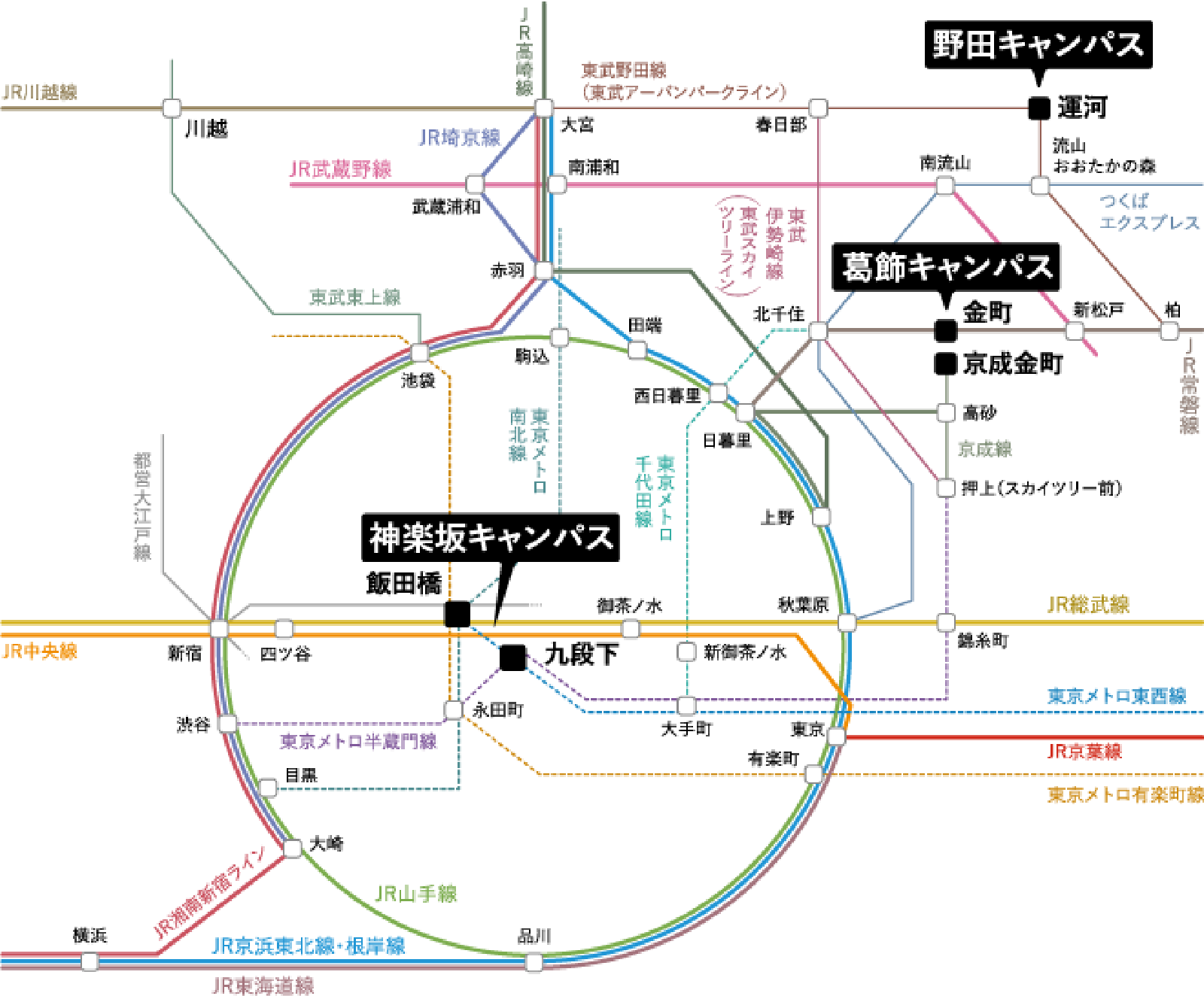 JR総武線、東京メトロ有楽町線・東西線・南北線、都営大江戸線「飯田橋」駅下車、徒歩5分